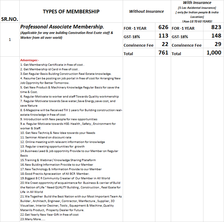 (Applicable for any one building Constrution Real Esate staff & Worker from all over world)